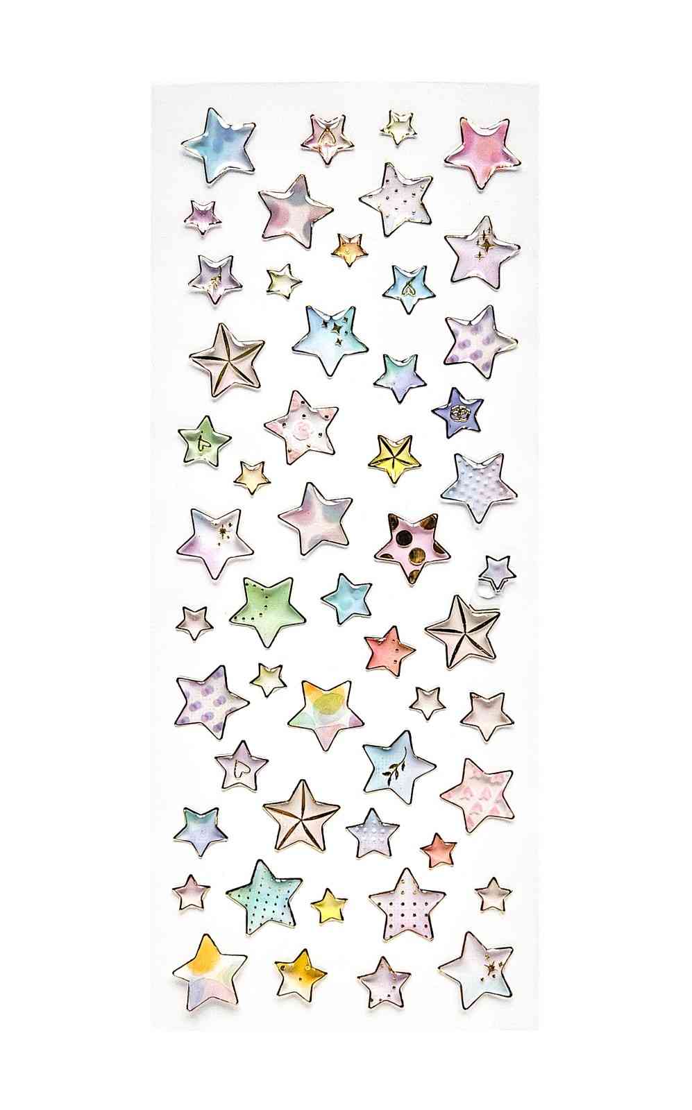 | Südamekujulised ja Tähekujulised 3D-kleebised erinevas suuruses ja toonides Kaartide, ümbrikute, karpide, albumite, märkmikute ja muude esemete ja loometööde kaunistamiseks Kleebised on kuldse serva ja läbipaistva taustaga Pakendis 52tk | |